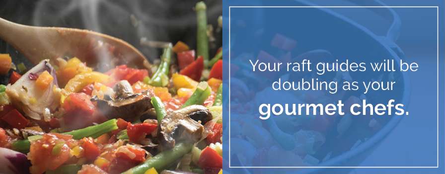 That’s right: your raft guides will be doubling as your gourmet chefs. They will impress you with their culinary prowess! Simply call ahead to discuss any allergies, dietary restrictions or other food requests and we will work to accommodate them.